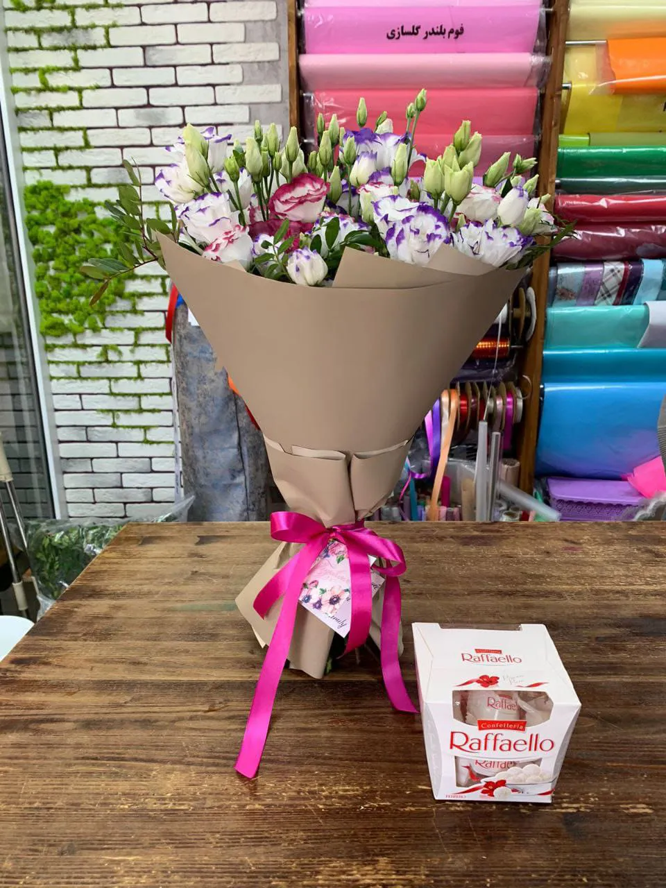 • Премиум - эустома - 15 шт., зелень, упаковка, лента