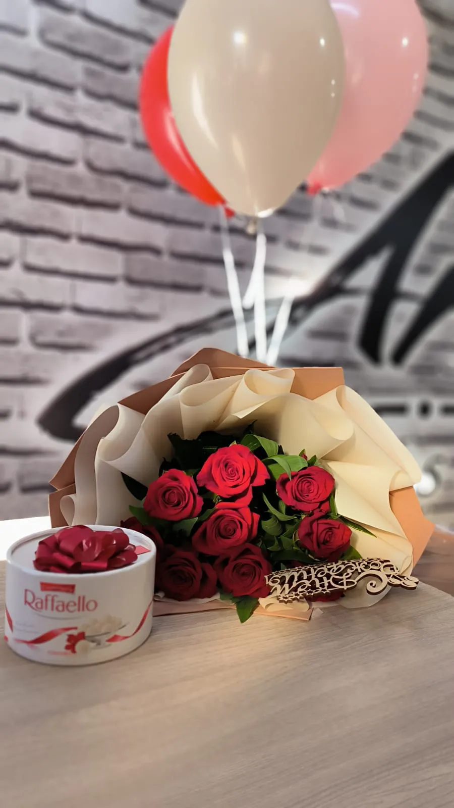 Состав букета: красные розы, зелень, топпер ,упаковка, лента