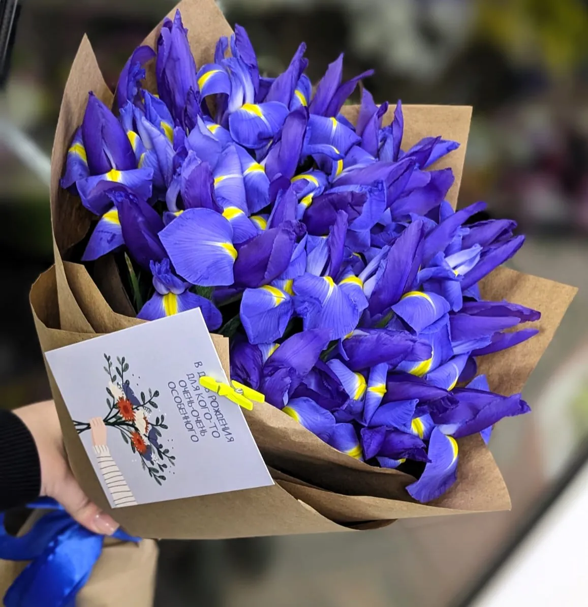 Синие ирисы – универсальные цветы, дарятся и женщине. Ирисы символизируют  искренность и доверие.  Подарить можно другу, коллеге или члену семьи, повод не важен – эмоции точно будут положительными.