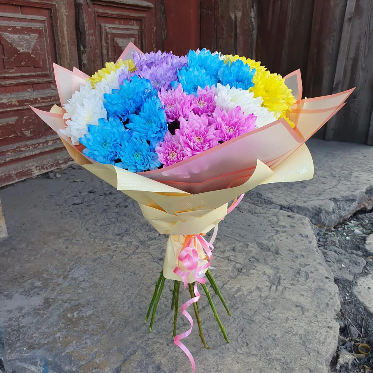 • Стандарт - кустовая хризантема - 5 шт., лента