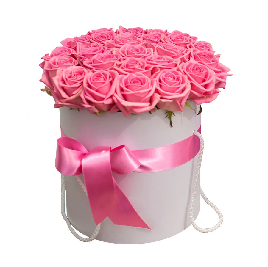 —Букет розовых роз в шляпной коробке