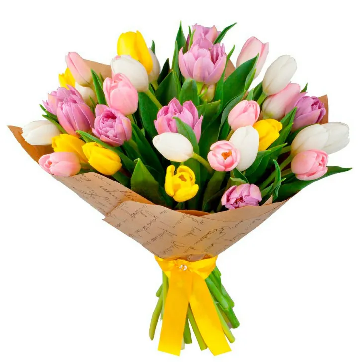 Состав букета: тюльпаны микс,упаковка,лента