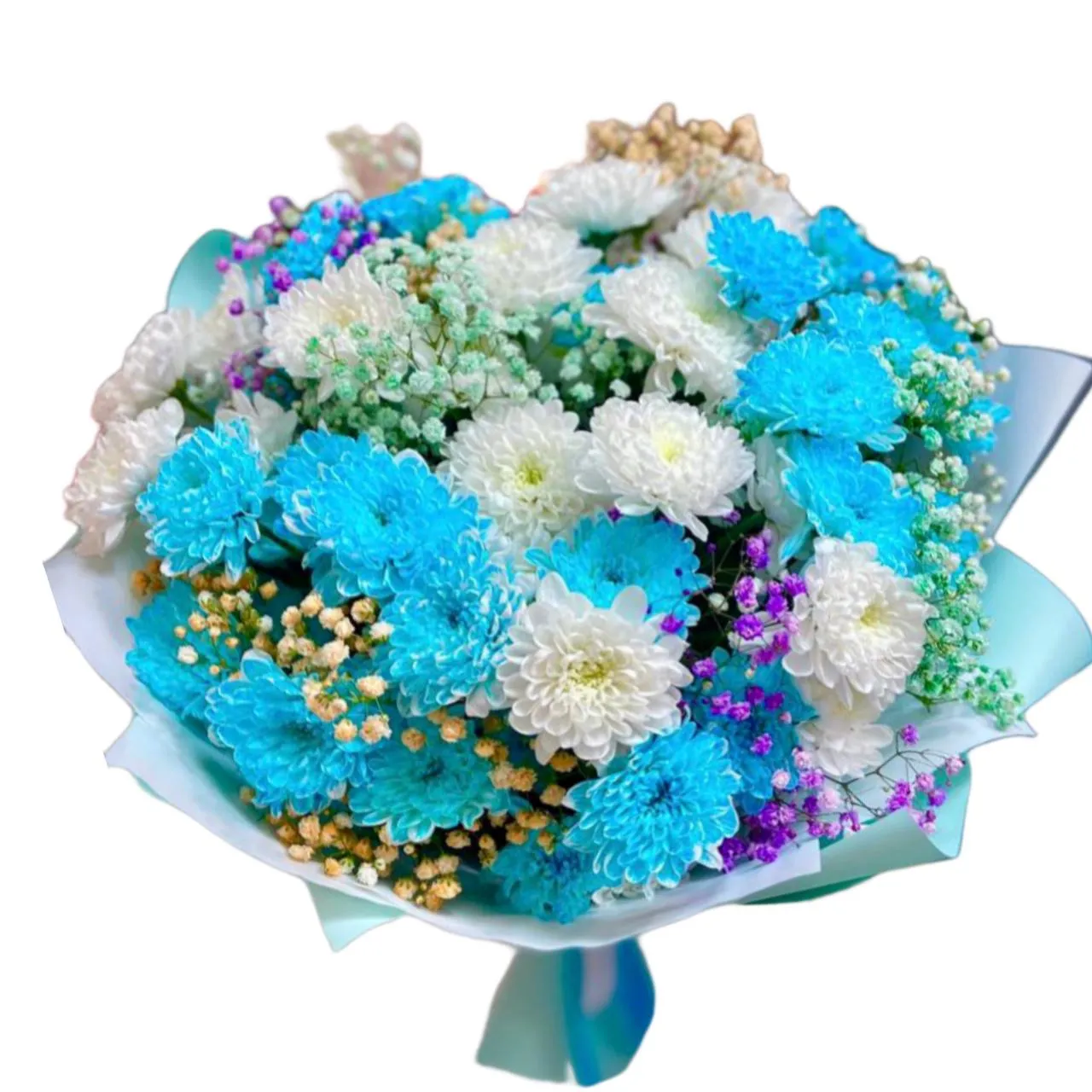 • Делюкс - кустовая хризантема - 15 шт., гипсофила, упаковка, лента